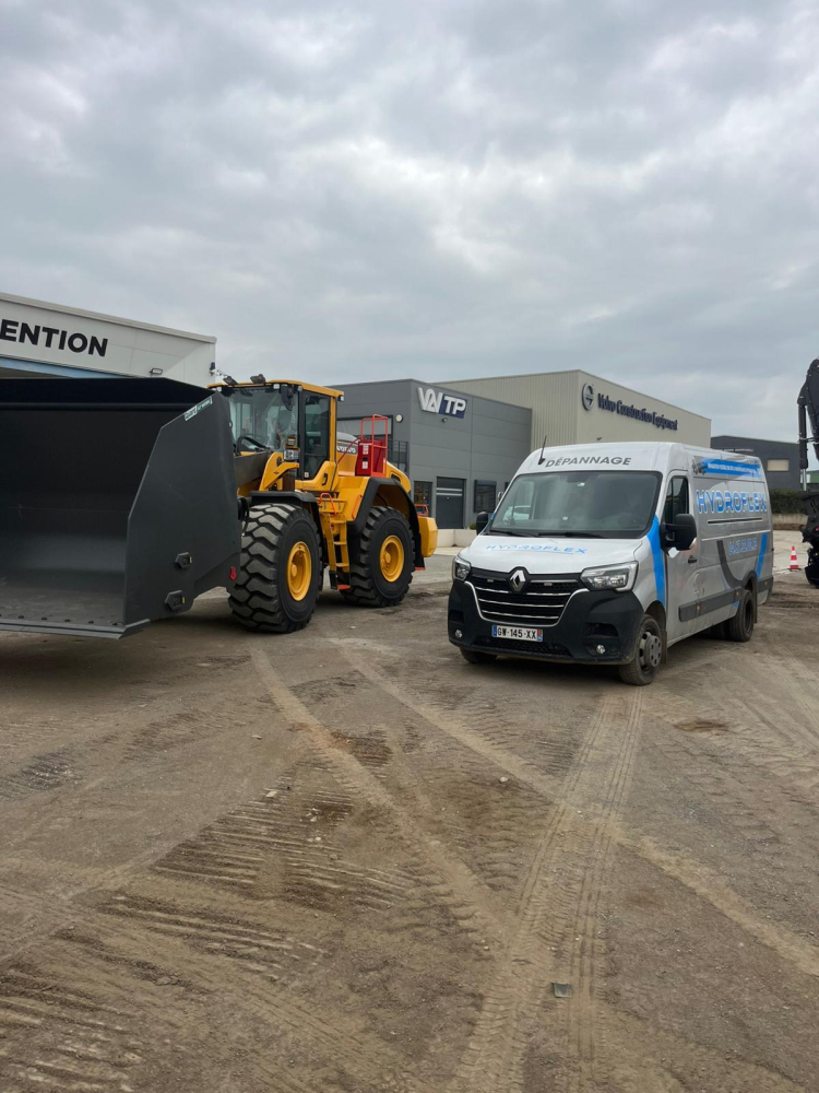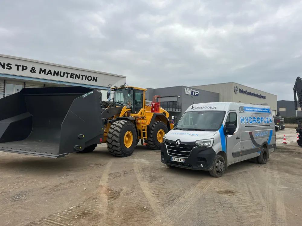 Nos équipes sont intervenues pour l'installation d'un godet GHD sur cette chargeuse Volvo, afin d'optimiser ses performances et son efficacité sur le chantier.